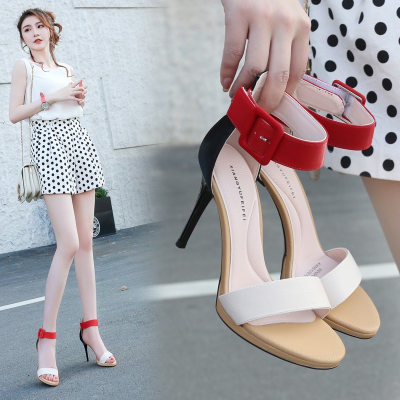 性感拼色一字扣百搭女凉鞋